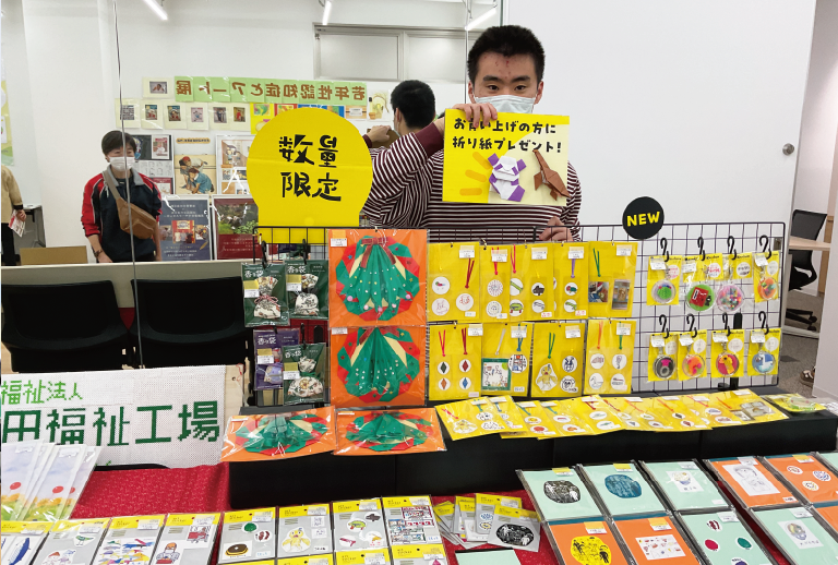 当事業所では、利用者の皆さんが日頃制作しているアート作品の展示と、自主製品販売を行いました。来場された方から直接声をかけていただく場面も多く、利用者さんにとっても自信ややりがいにつながる時間となりました。